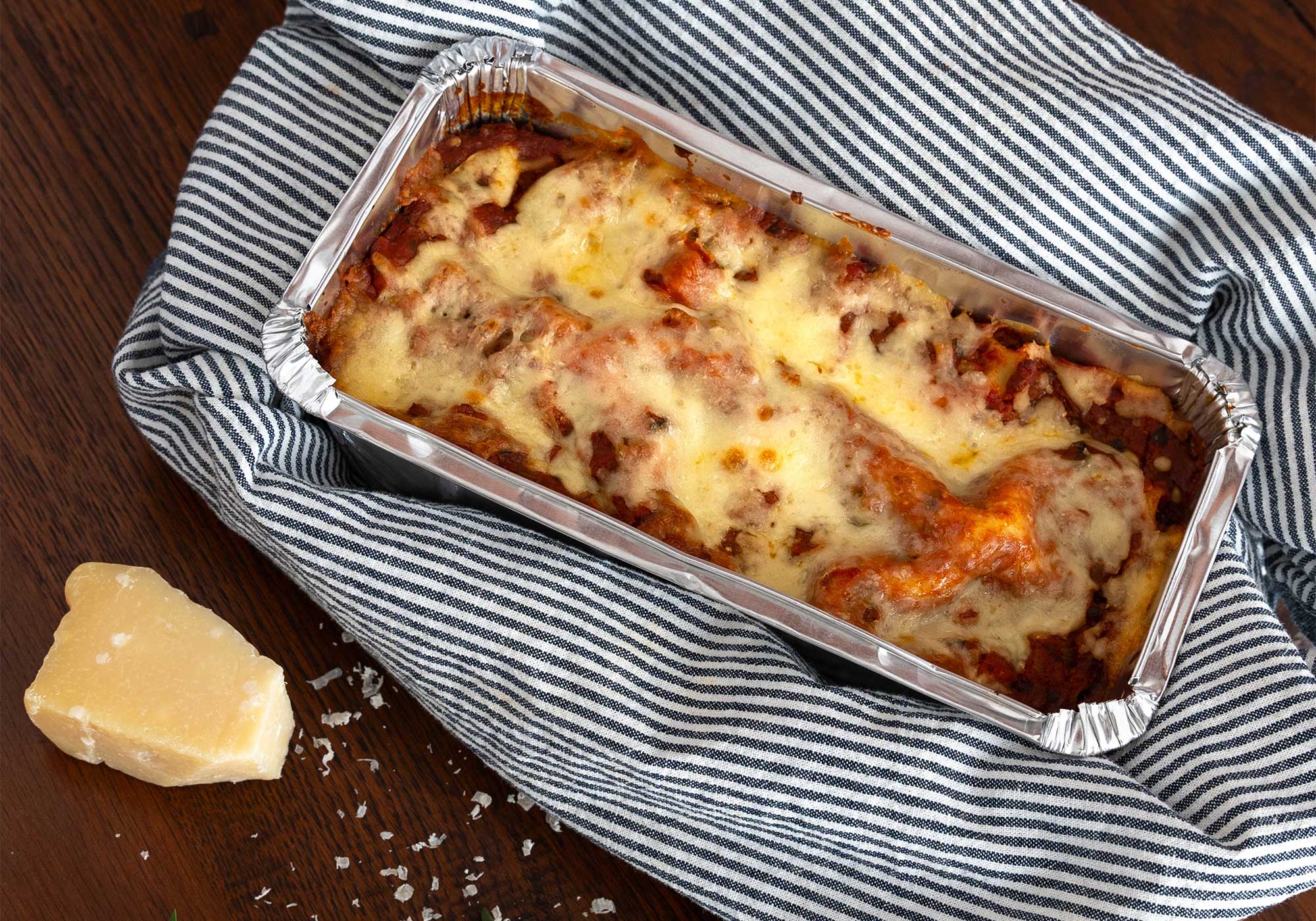 Preheat oven to 350°F. Cover with foil and bake 25–30 minutes. Uncover and bake 5–10 more minutes until heated through.